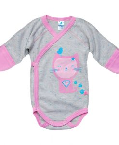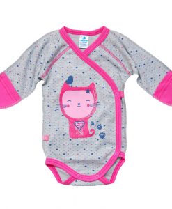 Pagamintas iš interlock 100% medvilnės su išorinėmis siūlėmis (neerzina kūdikio). Visos gamyboje naudojamos medžiagos yra hipoalerginės. NIKEL FREE mygtukai ir dažai be ftatalų, todėl šis gaminys yra ekologiškas ir saugus Jūsų kūdikiui.